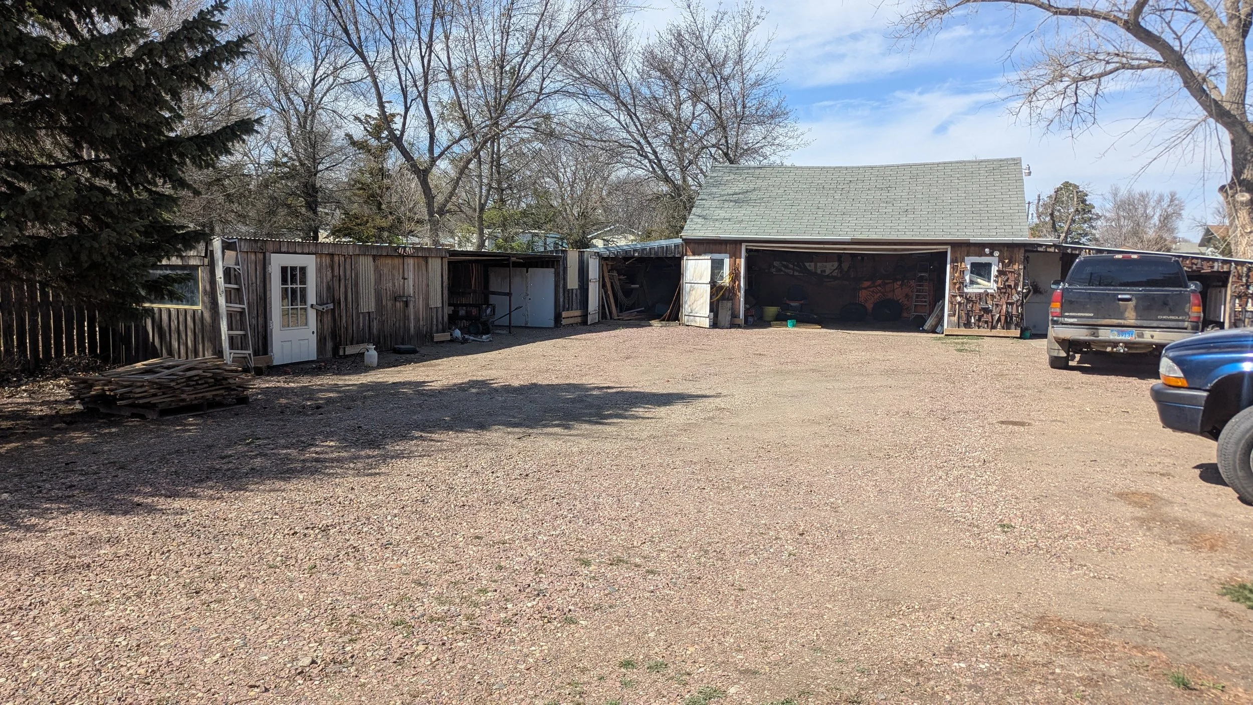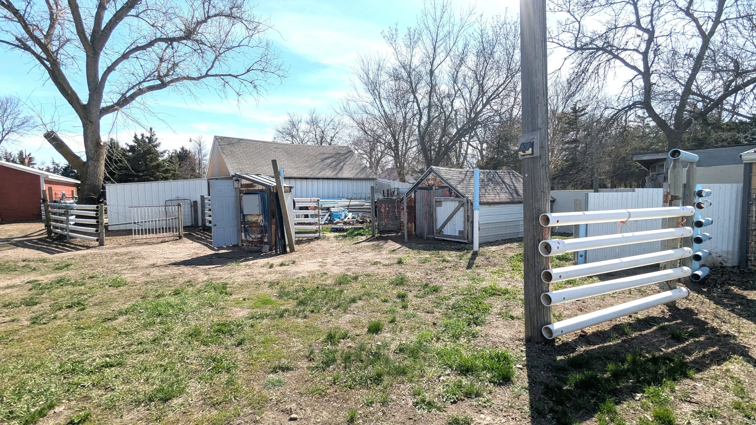 The house is situated in the southeast corner of a 149' x 150' parcel, totaling 22,500 sq. ft. (.51 acre) and comprising eight lots. The parcel has paved city streets on three sides. There is an unattached garage and other outbuildings. The north half of the parcel offers ample space for storage units, RV parking, gardening, fruit trees, grapes, and any uses you may envision.